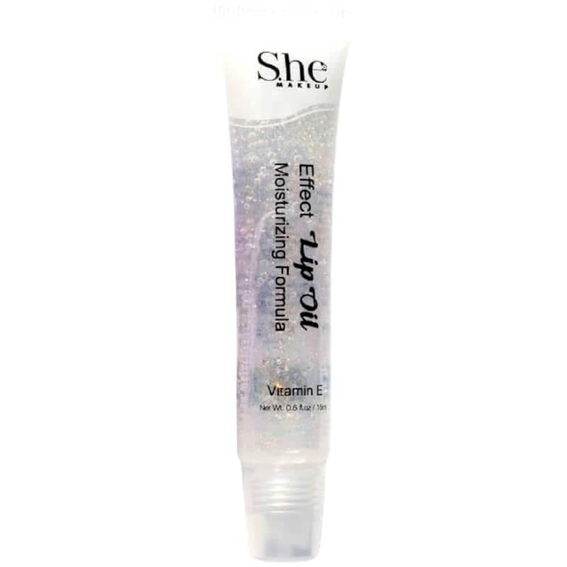 Aceite de labios liso transparente, con vitamina E y fórmula hidratante.