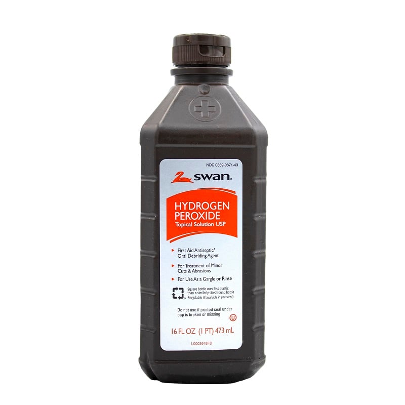 Solución tópica antiséptica de peróxido de hidrógeno para tratar pequeños cortes y heridas. Agente desbridante bucal, antiséptico de primeros auxilios.
