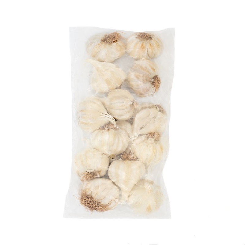 Paquete que contiene 0.5 libras de cabezas de ajo.