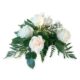 Combina la pureza y solemnidad de 10 rosas blancas, la delicadeza etérea de 6 gypsophilas (nubes) y el volumen y sofisticación de 20 unidades de follaje importado, creando un conjunto equilibrado, fresco y lleno de dignidad.