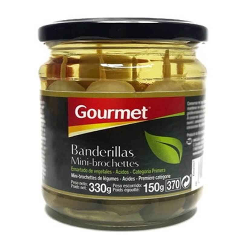 Mini brochetas, ensartado de vegetales, marca Gourmet.