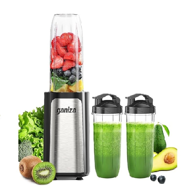 Ganiza Licuadora para batidos, 14 licuadoras personales para batidos y batidos para cocina con 3 tazas portátiles (1 x 24 onzas y 2 x 17 onzas), máquina de batidos de una sola porción, receta