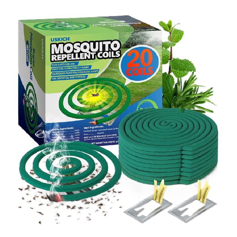 Bobinas repelentes de mosquitos para patio al aire libre, aroma fresco, el uso alcanza hasta 10 pies, cada bobina de mosquito se quema durante 5-7 horas (contiene 20 bobinas)