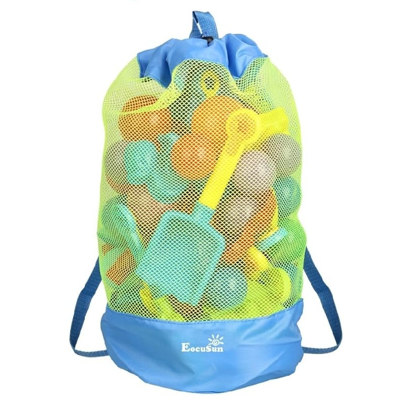 Bolsa de Playa de Malla Grande, EocuSun. Duradera con cordón para la arena, mochila de playa para nadar y piscina, juguetes de pelotas de almacenamiento, manténgase alejado de la arena y el agua.