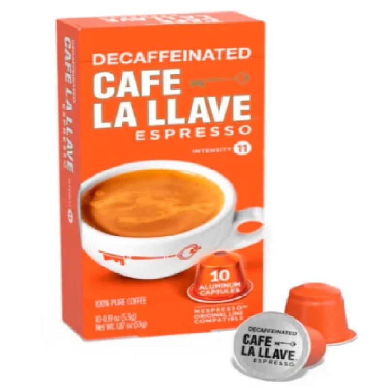 Café espresso descafeinado en cápsulas marca La Llave, 100% café puro.