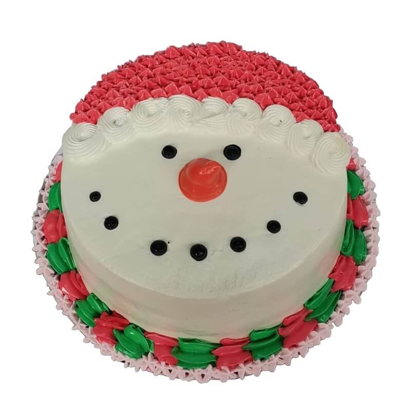 Tarta de 21 cm de diámetro con panetela de vainilla relleno con crema mantequilla de chocolate, cubierto con merengue saborizado.