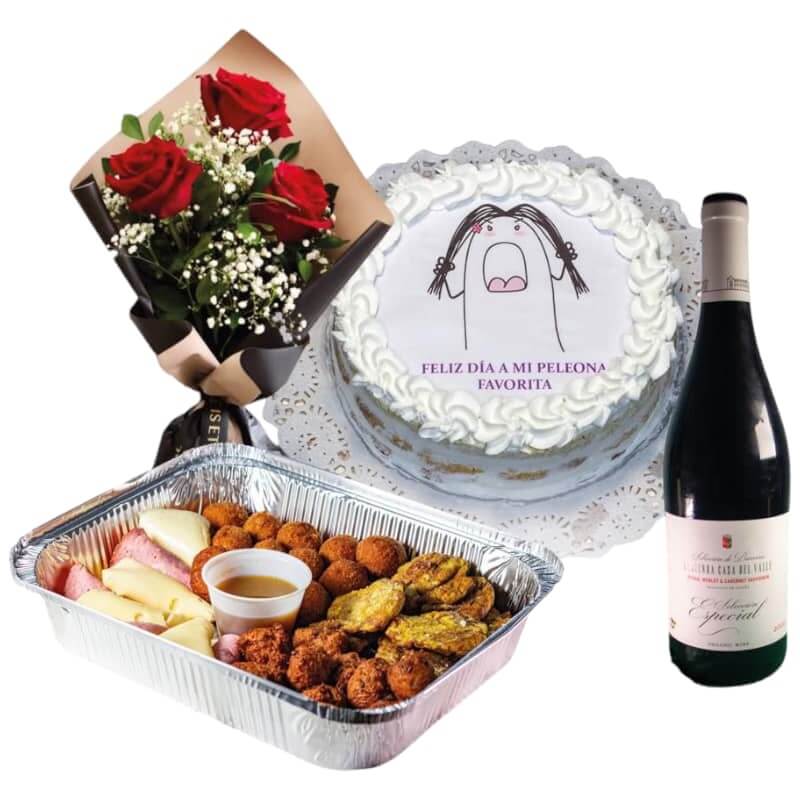 -100 g de jamón. - Botella de vino de 750 ml, blanco o tinto según disponibilidad, marca según existencias.