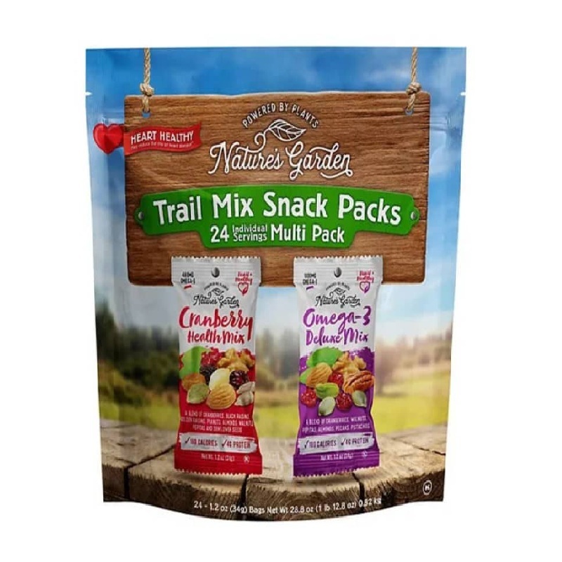 Paquetes de snack listos para consumir que contienen una combinación de frutos secos, frutas deshidratadas, semillas, chocolates u otros ingredientes dulces o salados.