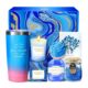 Este sofisticado juego de regalo incluye un vaso de acero inoxidable aislado de 20 onzas, velas perfumadas, sales de baño, bombas de baño, jabones y una tarjeta de felicitación sincera con flores secas.