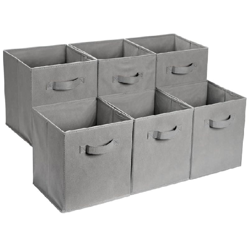 Cestos plegables de tela para almacenar, organizador con asas, 13 x 13 x 13 pulgadas, color gris, paquete de 6.