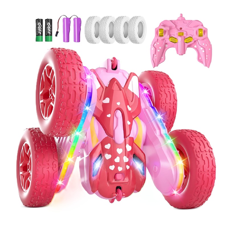 Coche de control remoto para niñas, autos RC rosados, autos a control remoto para niñas, juguetes de doble cara giratoria de 360° con faros 4WD, juguetes para niños para regalos de cumpleaños.