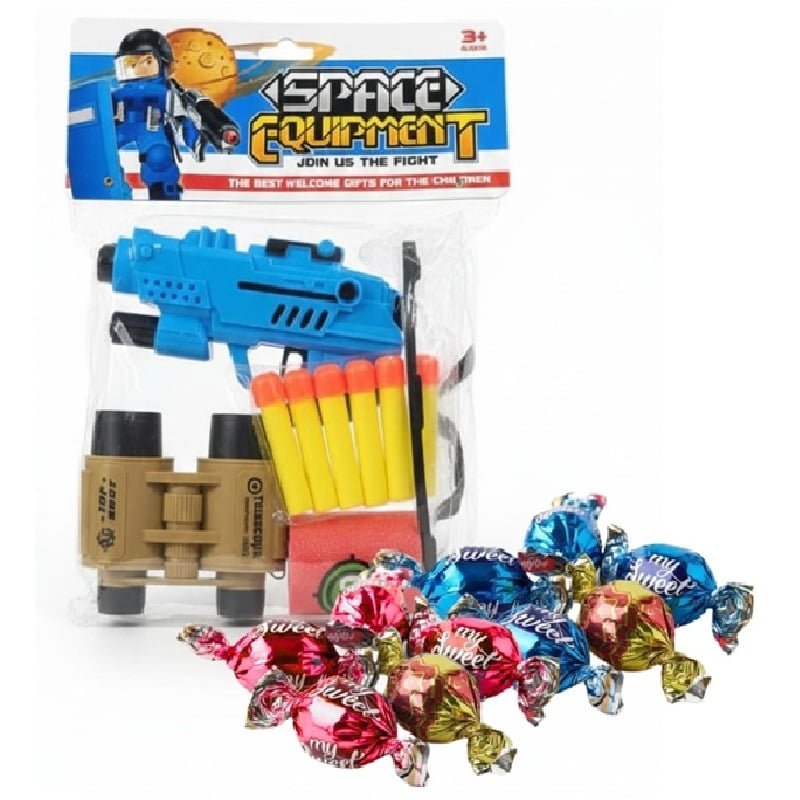 Combo Aventura Espacial Pistola con binoculares + 10 Bombones Rellenos