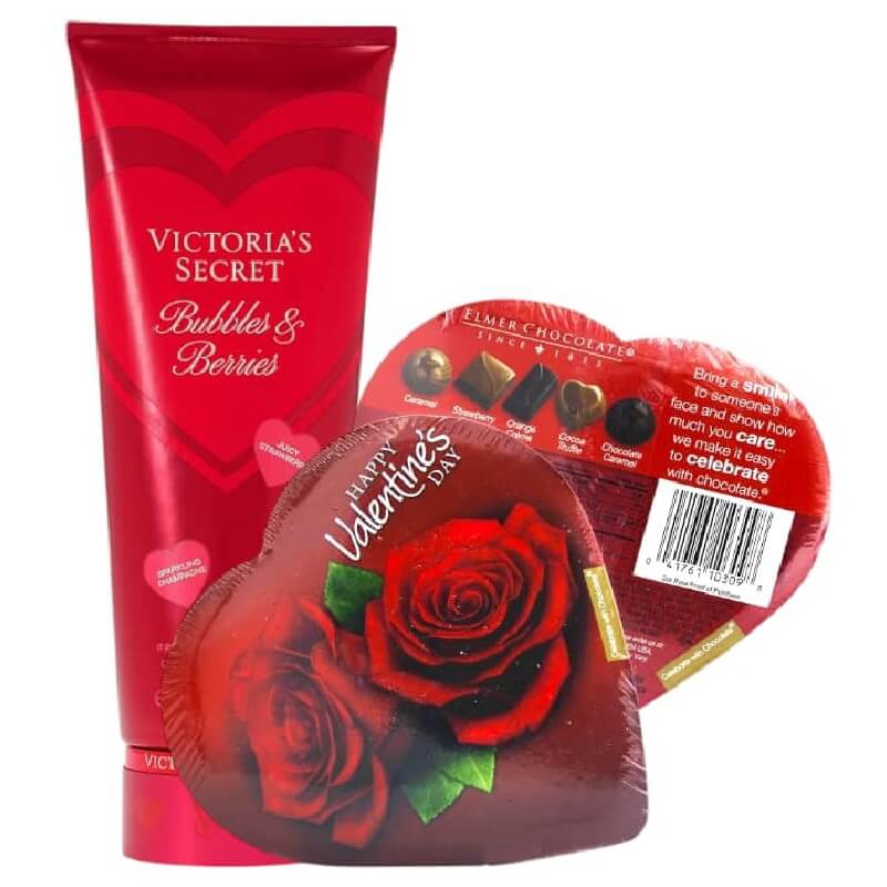 Bubbles and Berries (fragancia frutal amaderada con una mezcla de champagne burbujeante y jugosas fresas) o Bows and Roses (fragancia floral almizclada con notas de bayas dulces y pétalos de rosa) según existencias.