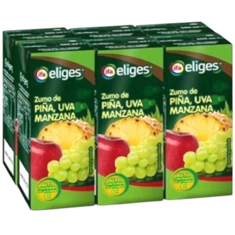 Combo de jugos sabor a frutas (piña, uva, manzana).