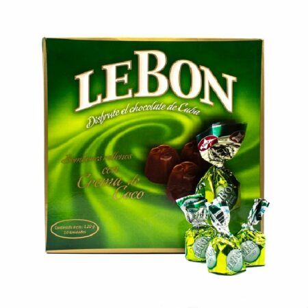 – Estuche de 240 g de Bombones Lebon rellenos con Crema de Coco y Cereal.