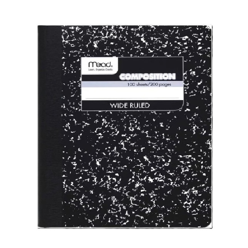 Cuadernos de composición Mead, 100 hojas de papel con reglones gruesos, negro.