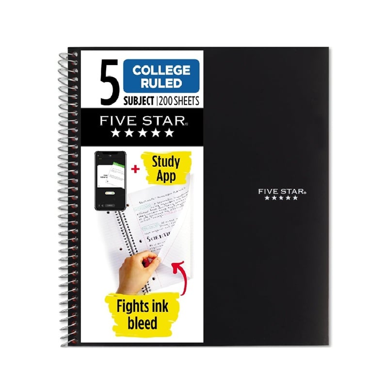 Cuaderno en espiral de cinco estrellas, 5 puntos, rayado en el colegio, 200 hojas, 11.0 x 8.5 pulgadas individual