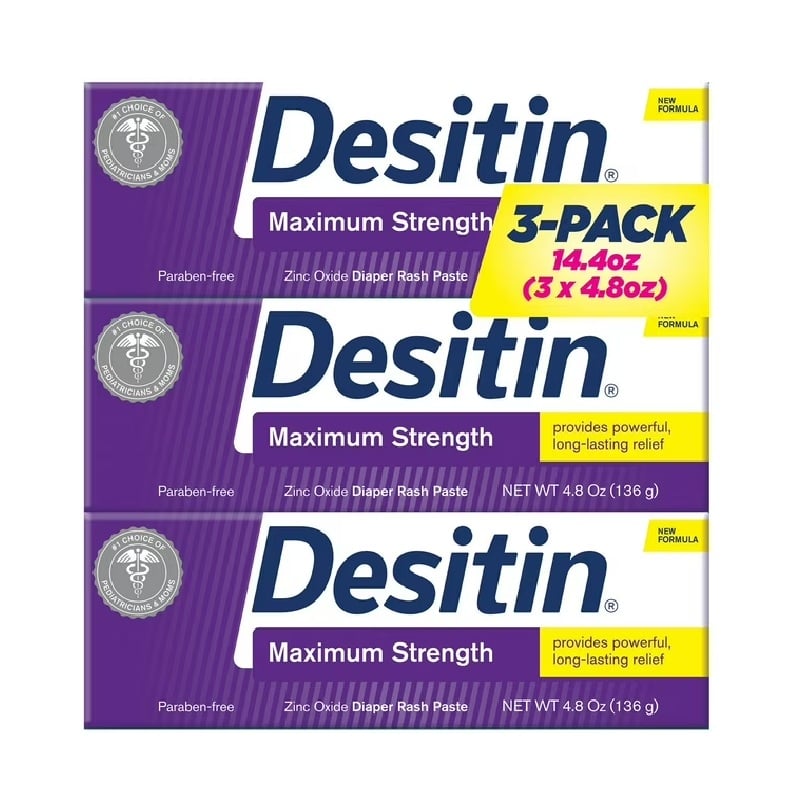 Pasta para la dermatitis del pañal Desitin de máxima potencia, 4.8 oz., paquete de 3.