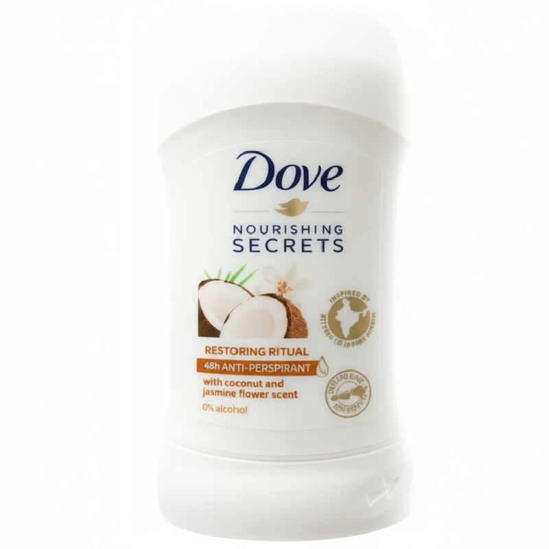 Desodorante Dove Nourishing Secrets en barra sin alcohol y anti-transpirante. Brinda hasta 48 horas de protección.