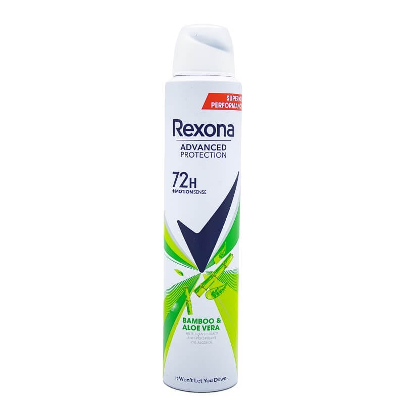 Desodorante Rexona con protección avanzada de aloe vera y bamboo, antitranspirante y refrescante. Brinda 72 horas de protección contra el sudor y el olor. Aroma limpio, sutil y duradero.