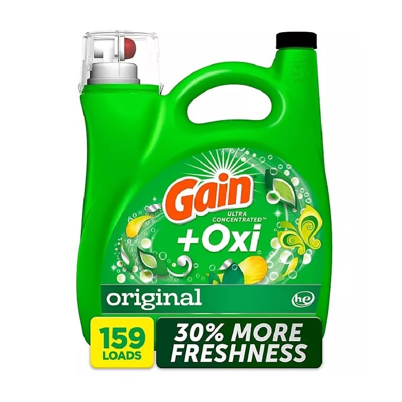 Detergente Líquido para Ropa Gain+Oxi, original, 159 cargas, 170 onzas líquidas.