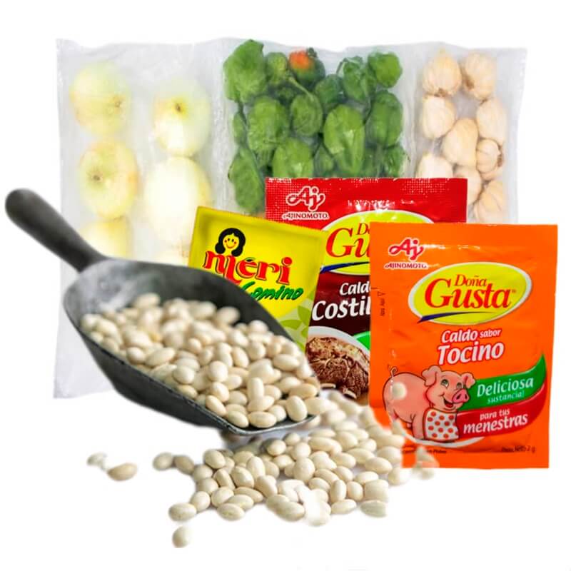 1 Paquete que contiene 1 lb de Cebolla; 0.5 lbs de Ají Cachucha; 0.5 lbs de Ajo en Cabezas.