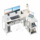 Escritorio de computadora marca AODK, en forma de L de 53 pulgadas con cajones, con tomas de corriente y estantes de almacenamiento, soporte móvil para CPU para hogar, oficina, gaming, color blanco.