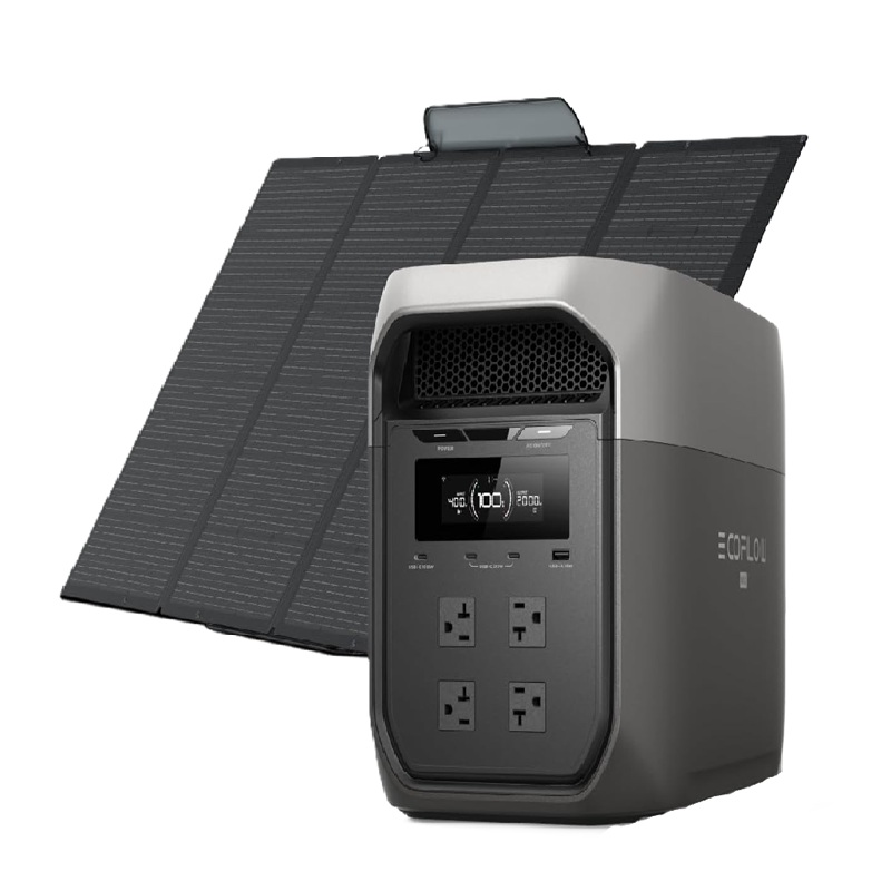 Estación de energía portátil Delta 3 MAX con panel solar bifacial de 400 W, salida X-Boost de 3400 W, carga ultrarrápida del 0 al 80% en 1.13 horas, respaldo en el hogar y camping.
