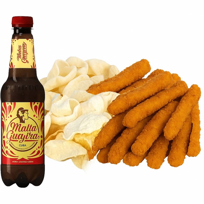 Fajitas de pollo 230 g, más maripitas y un líquido (Malta Guajira).