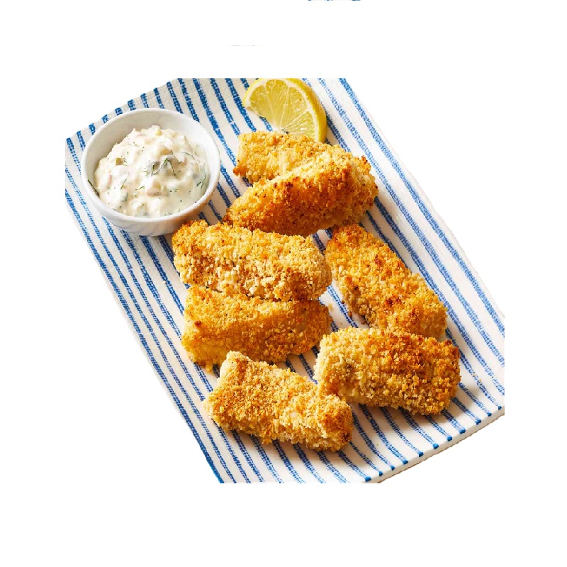 Tiras de pescado empanizadas. Bandeja de 10 bastones.