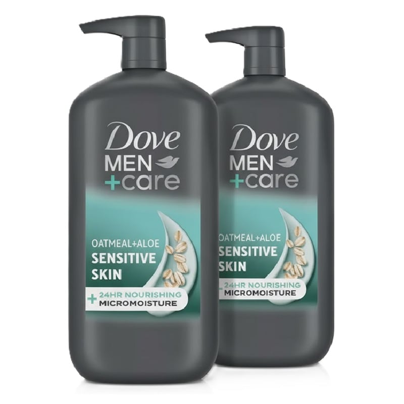 Contiene 2 botellas de gel de ducha Dove Men+Care para piel sensible, avena y aloe, 887 ml (30 oz líq.).