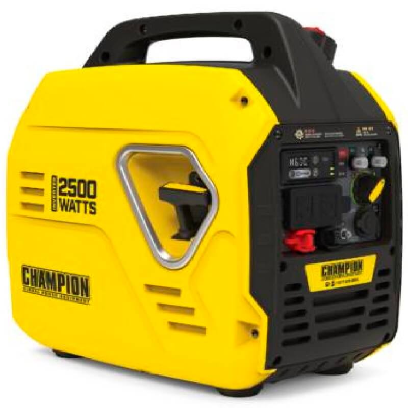 El generador inversor portátil de 2500 vatios Champion Power Equipment 201153 con protección contra CO es ideal para acampar, hacer tailgating, cargar elementos alrededor del RV o brindar respaldo para algunos elementos básicos. Esta unidad no se recomienda para respaldo de emergencia en el hogar. Con un peso de menos de 40 libras, este modelo ultraliviano es uno de los inversores de 2500 vatios más livianos de la industria. Gracias al diseño innovador de Champion, obtener energía mientras se está en movimiento nunca ha sido tan fácil. Enciéndalo con el confiable arranque por retroceso, además, la tecnología de arranque en frío garantiza un arranque rápido en climas fríos. Se incluyen un tomacorriente dúplex doméstico de 120 V 20 A (5-20R), además de un tomacorriente de 12 V estilo automóvil y tomacorrientes paralelos que puede usar para cargar su teléfono, computadora portátil o dispositivo similar. Este inversor funciona a 53 dBA desde 23 pies, aproximadamente el mismo nivel de ruido que un lavavajillas en funcionamiento en la habitación contigua. Con gasolina, el motor Champion de 79 cc produce 2500 vatios de arranque y 1850 vatios de funcionamiento. Cuando el tanque de gasolina de 1,1 galones está lleno, este inversor funcionará hasta 11,5 horas con una carga del 25 %. Conecte este inversor Parallel Ready con otro inversor Champion de 2500 vatios para obtener 30 amperios de potencia. Si compra el kit paralelo opcional (no incluido), puede integrar dos inversores, además, el kit tiene una toma de corriente para RV de 120 V 30 A con bloqueo y de 120 V 50 A. Conecte con confianza sus dispositivos electrónicos sensibles, ya que este inversor produce energía limpia (<3 % THD). Diseñado para la seguridad con un sensor de apagado por bajo nivel de aceite, este modelo tiene una capacidad de aceite de 0,5 cuartos. La tecnología de inversor de Champion incluye un modo económico inteligente, que puede reducir la carga eléctrica, lo que proporciona un funcionamiento más silencioso, una vida útil prolongada del motor y un mejor ahorro de combustible. Totalmente ensamblado con una configuración sin complicaciones, el asa de transporte incorporada hace que el transporte sea muy fácil. Compre este generador certificado por la EPA y que cumple con las normas de CARB con confianza. Champion Support y nuestra red nacional de centros de servicio respaldarán su compra con una garantía limitada de 3 años y soporte técnico GRATUITO de por vida. La tecnología CO Shield monitorea la acumulación de monóxido de carbono (CO), un gas venenoso producido por el escape del motor cuando el generador está en funcionamiento. Si CO Shield detecta niveles elevados peligrosos de gas CO, apaga automáticamente el motor. CO Shield no reemplaza una alarma de monóxido de carbono para interiores ni una operación segura. NO permita que los gases de escape del motor ingresen a un área confinada a través de ventanas, puertas, respiraderos u otras aberturas. Los generadores SIEMPRE deben usarse al aire libre, lejos de edificios ocupados y con el escape del motor apuntando lejos de personas y edificios. Cumple con los requisitos de ANSI/PGMA G300-2018.