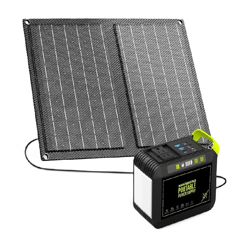 Generador Solar de 88.8 Wh marca: MARBERO con panel solar de 21 W incluido estación de energía portátil 80 W 110 V 120 W máximo para acampar al aire libre senderismo pesca emergencia.