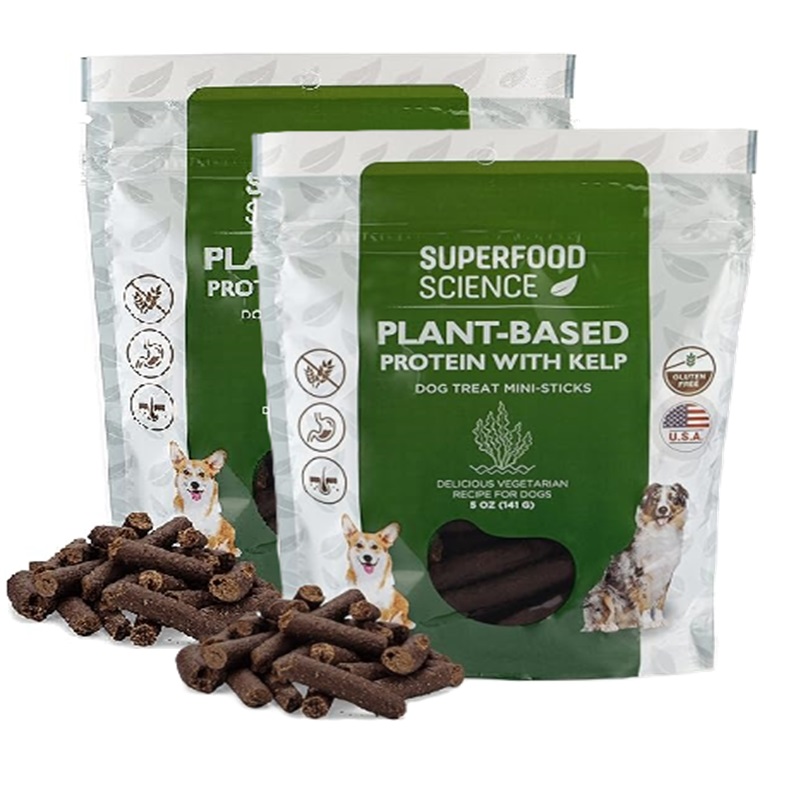 Golosinas hipoalergénicas saludables para perros: aperitivos vegetarianos a base de plantas para perros con algas, batata, chía, linaza, aceite de coco para piel y pelaje, entrenamiento de proteínas.