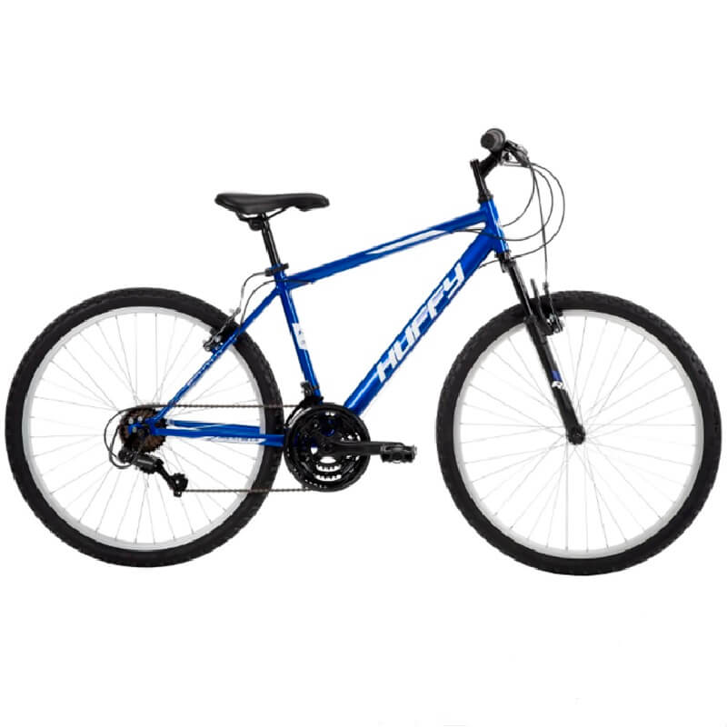 La bicicleta de montaña Huffy Rock Creek de 26 pulgadas en azul combina un marco de cola dura, un gran estilo y las especificaciones adecuadas para pasar una explosión sobre los baches en senderos pavimentados o paseos por el vecindario. Sistema de cambio de marchas suave de 18 velocidades con un desviador Shimano indexado en la parte trasera que cambia constantemente entre marchas para realizar ajustes rápidos en subidas o acelerando en terreno llano.