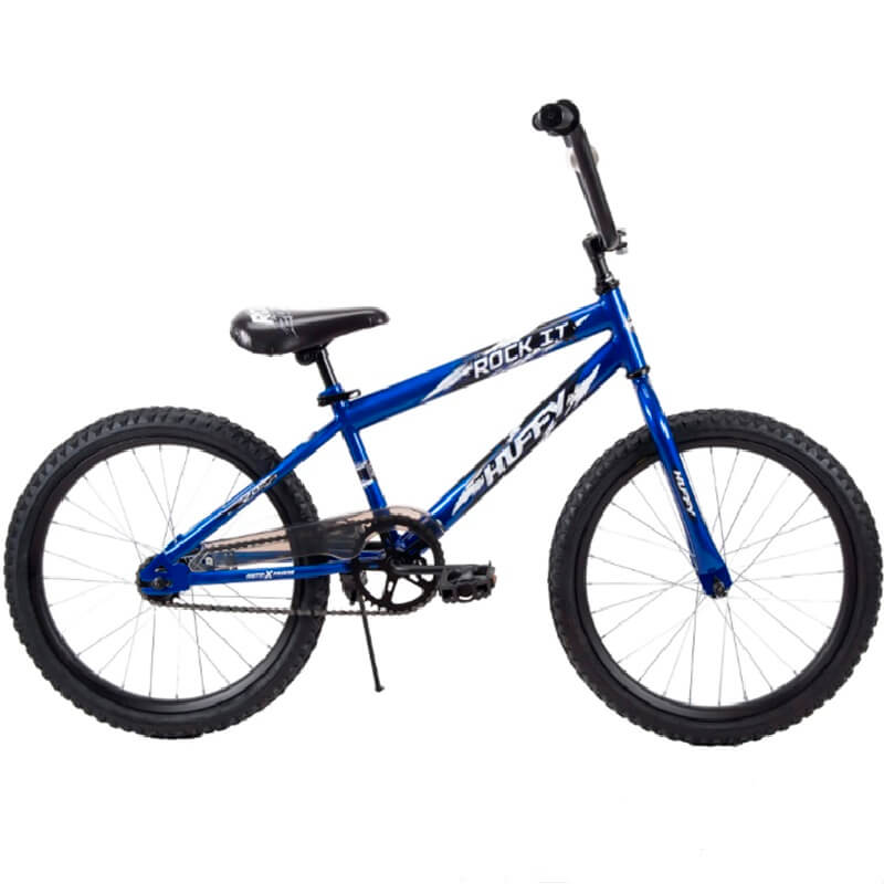 • Bold Style: Huffy 20in Rock La bicicleta tiene un llamativo marco azul real con gráficos llamativos.