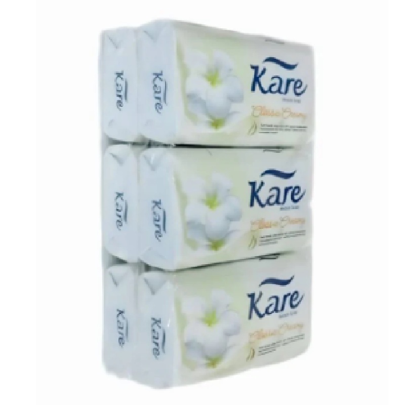 Jabón de Baño de 75g c/u, contiene 6 unidades, marca Kare. Ideal para la higiene personal, perfecto para mantener la piel suave y saludable.