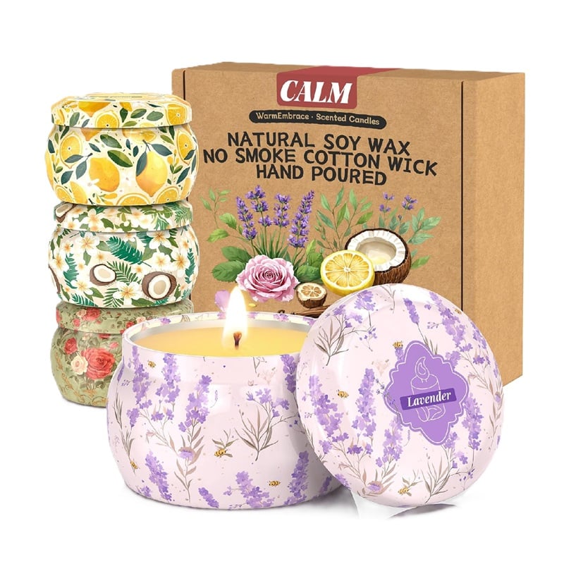 Velas perfumadas para mujer, juego de 4 velas de soja para el hogar, juego de regalo de velas para mujeres.