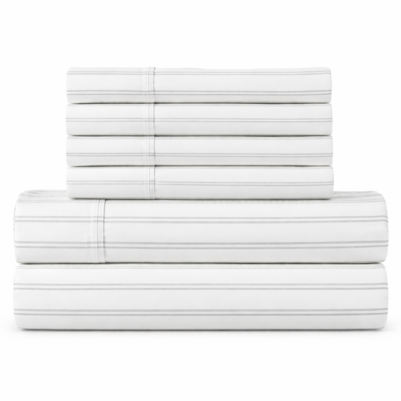 Este juego de sábanas combina algodón y lyocell para ofrecer suavidad, frescura y excelente transpirabilidad. La tecnología HYGROCOTTON ayuda a regular la temperatura, mientras que el acabado antimicrobiano HeiQ Pure mantiene la cama más fresca y libre de olores. La sábana ajustable con OmniFit Stretch se adapta firmemente a colchones de hasta 17″, y el diseño Double Stripe Soft Silver aporta un estilo elegante y neutro.
