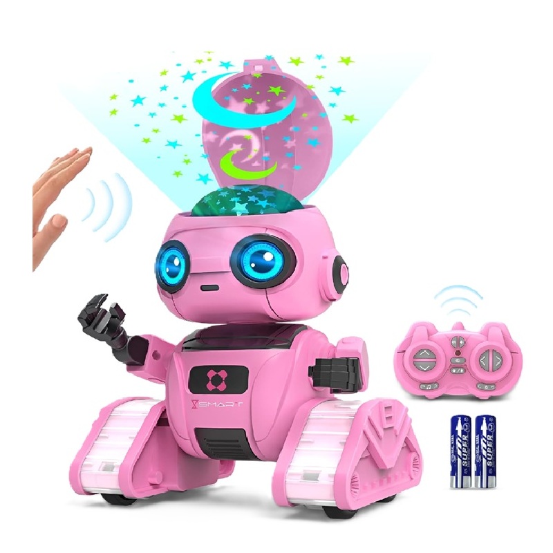 Robot recargable de control remoto con demostración automática, proyección de luz, movimientos de baile, música y detección de gestos, robot de juguete para niñas.