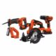 El kit combinado inalámbrico definitivo de 4 herramientas para bricolaje incluye taladro/atornillador de 20 voltios, sierra circular, sierra recíproca y luz de trabajo. Este kit combinado forma parte del sistema de batería BLACK+DECKER 20-Volt MAX; compatible con toda la línea de herramientas eléctricas y de jardinería BLACK+DECKER 20-Volt Max. El taladro/atornillador cuenta con un embrague de 11 posiciones para evitar dañar los tornillos y la superficie de trabajo, con una luz de trabajo LED que la ilumina, portabrocas sin llave y 0-650 RPM. Ofrece un diseño compacto y ligero que facilita su uso en espacios reducidos. La sierra circular cuenta con una hoja de 5.5 pulgadas, motor de alto torque, ajuste de profundidad de corte y bisel sin herramientas y un diseño compacto para facilitar su uso. La sierra recíproca cuenta con un motor de 3000 SPM, una carrera de 7/8 pulgadas y cambios de hoja sin herramientas. La luz de trabajo es práctica y potente, con hasta 70 lúmenes y una autonomía de hasta 11 horas para todo tipo de tareas. La bombilla LED articulada funciona con una batería de litio de 20 voltios.