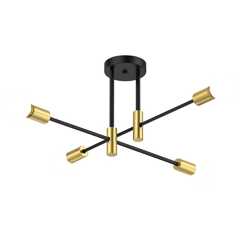 Moderno Sputnik – Lámpara de techo con 4 luces de mediados de siglo, de metal industrial, montaje semiempotrado para comedor, dormitorio, sala de estar, negro y dorado