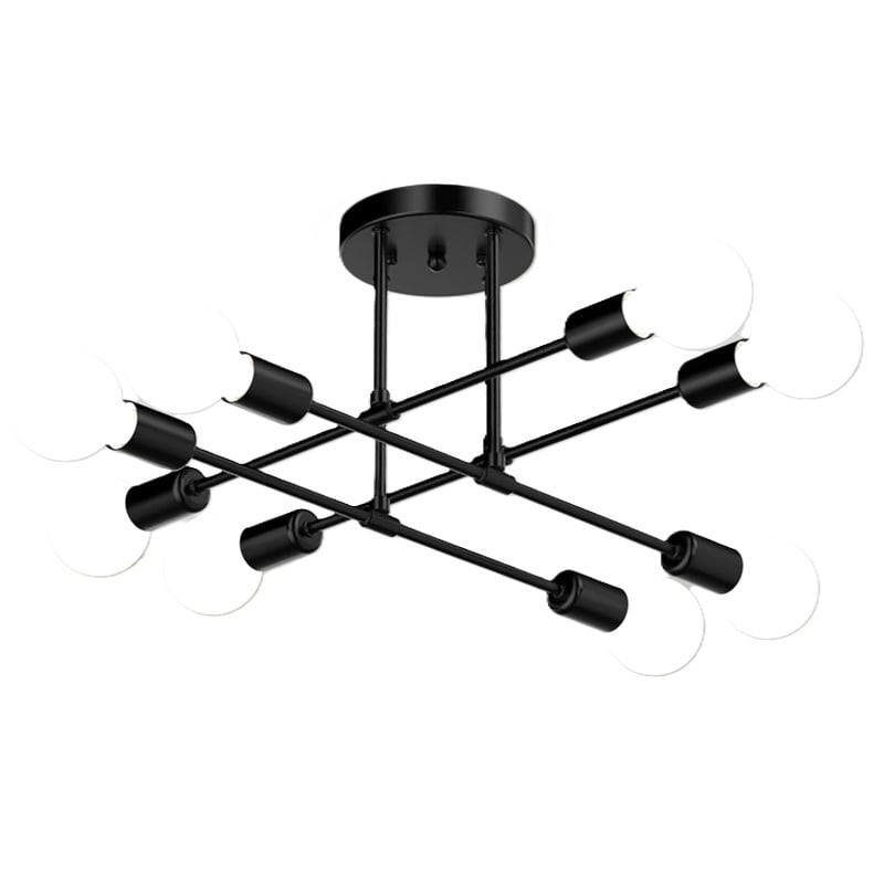 Moderna lámpara Sputnik de techo, 8 luces de mediados de siglo de metal industrial semiempotrado para comedor, dormitorio, sala de estar, color negro.