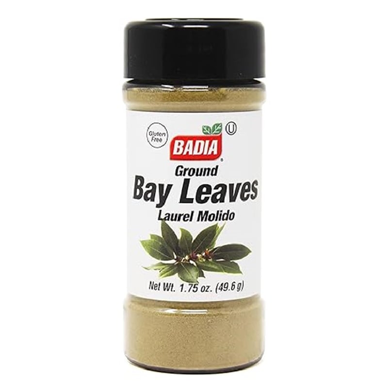 Laurel Molido marca Badia. Especia muy popular en la cocina para sazonar sopas, cremas, frijoles, ensaladas y carnes.