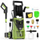 - El paquete incluye: esta lavadora a presión está equipada con 4 boquillas de conexión rápida (0°, 15°, 25°, 40°), una boquilla turbo, una toalla de lavado de automóvil, un guante de microfibra de lavado, un par de acoplamientos de conexión rápida de 1/4, una cinta de teflón. También incluye una manguera de lavado a presión y una pistola de lavado a presión, disponible para todas tus necesidades de limpieza. Además, el cañón de espuma incluido crea una rica espuma que mejora el limpieza de superficies, ya sea Es tu coche o ventanas de cristal, haciendo que tu limpieza diaria sea más fácil