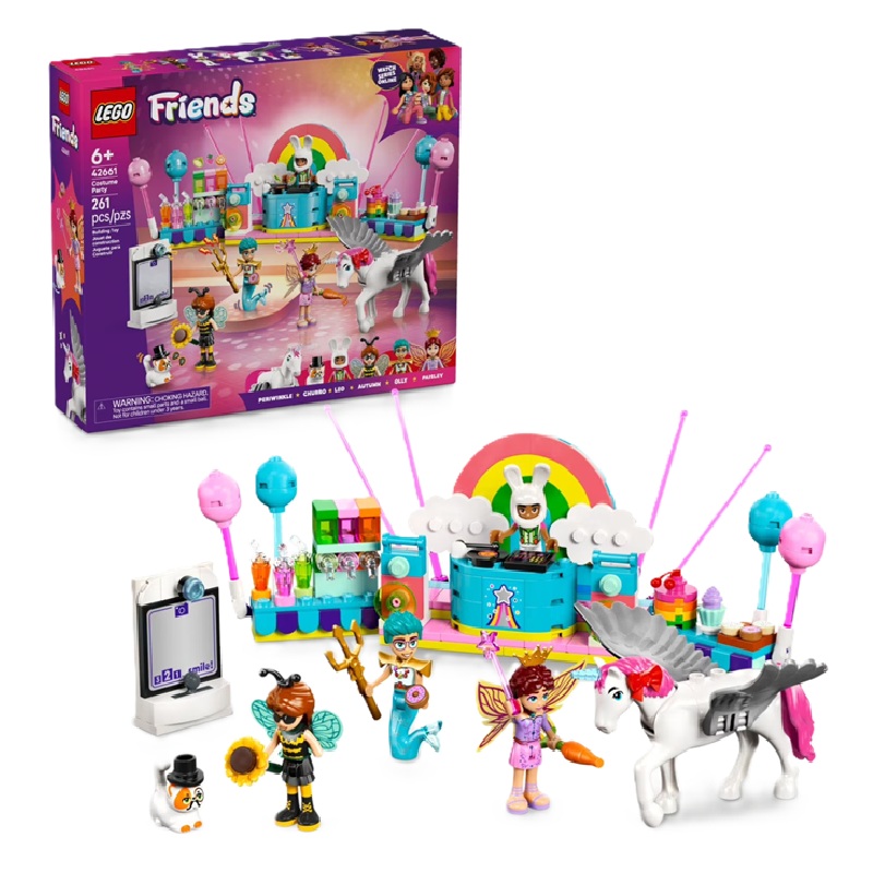 Niños de 6 años en adelante organizan una fiesta épica con la Fiesta de Disfraces LEGO Friends con Unicornio y Hada (42661), un set de construcción repleto de divertidas características como una cabina de DJ, escenario y disfraces.