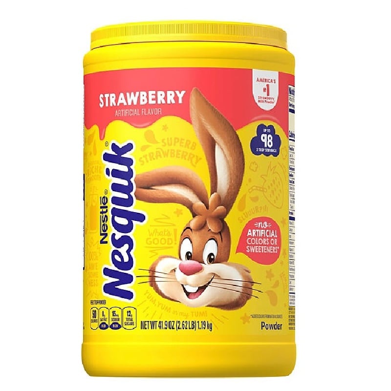 Un envase de 1,27 l (41.9 oz) de Nesquik® sabor fresa en polvo para bebida