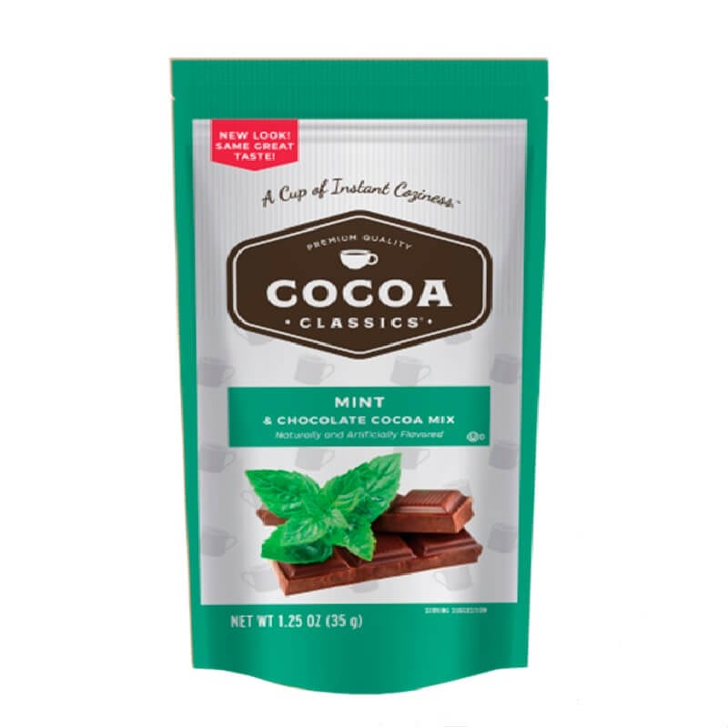 Mezcla de Cacao con Chocolate y Menta. Solo agregue agua caliente para obtener un delicioso sabor a menta y chocolate mezclado, que forman la combinación perfecta en esta dulce mezcla de cacao elaborada con leche en polvo sin grasa.