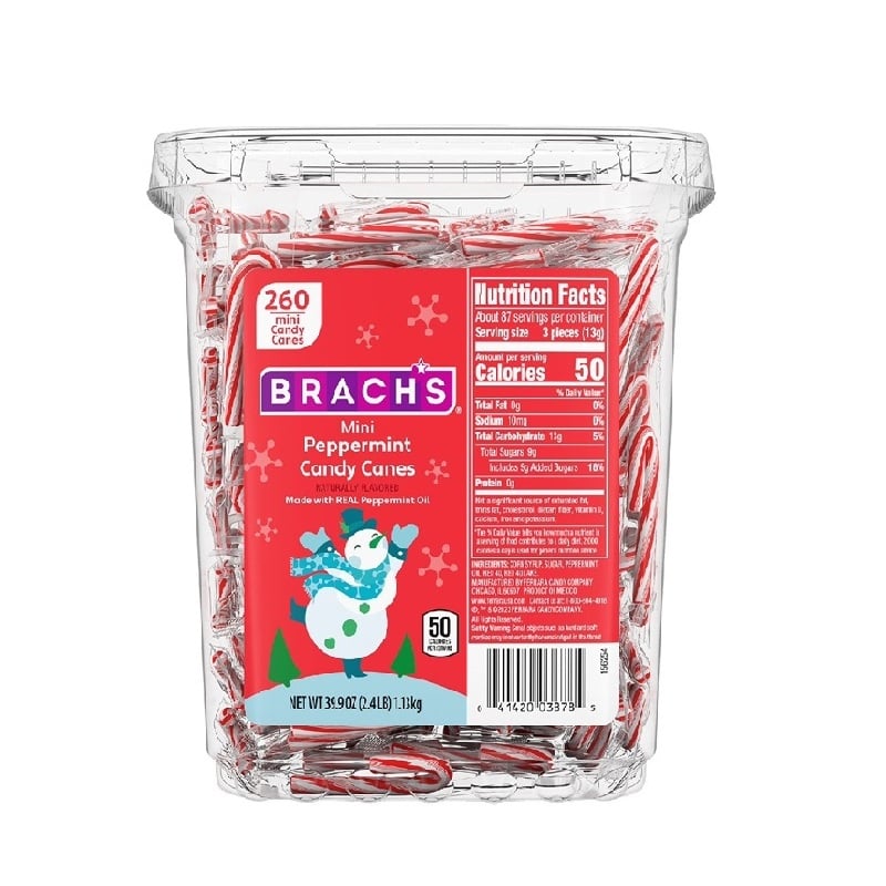 Los mini bastones de caramelo de menta Brach’s están hechos con aceite de menta real para darle un toque fresco y alegre a cada ocasión esta temporada.