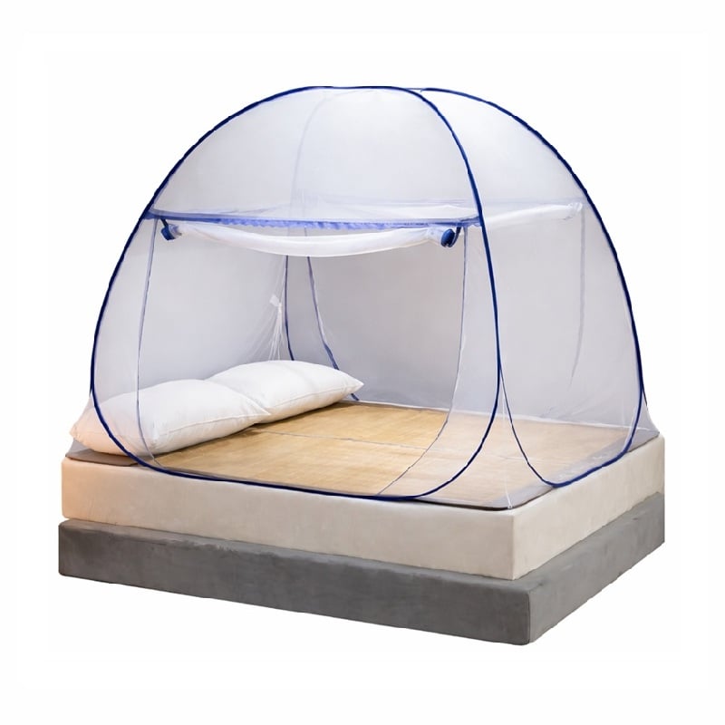 La mosquitera tiene un diseño de yurta, proporcionando más espacio que las mosquiteras tradicionales, suficiente para dos personas. Cuando está plegada, la mosquitera mide solo 12 pulgadas de diámetro y cabe fácilmente en bolsas de viaje, mochilas y maletas de 20 pulgadas.